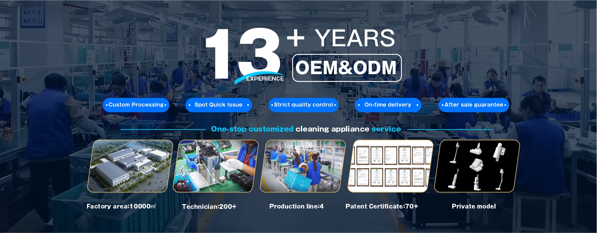 With in‑house manufacturing capabilities, we deliver reliable products to global customers under the philosophy of “Caring for People, Caring for Quality.” Our SGS‑standard factories in SUZHOU and DONGGUAN specialize in household and robotic vacuum cleaners, offering OEM/ODM services, factory‑direct pricing, and high‑quality solutions for international brands.